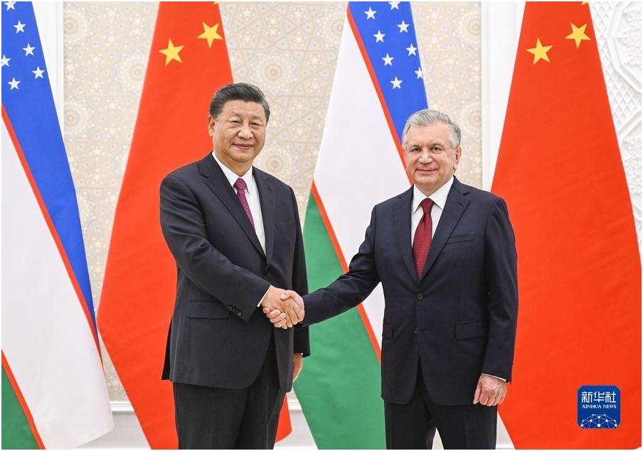 習近平指出,中烏建交30年來,兩國始終相互尊重、睦鄰友好、同舟共濟、互利共贏,持續深化戰略互信,不斷擴大互利合作,全面弘揚世代友好,將中烏關系提升到了全面戰略伙伴關系的新高度,為兩國共同發展繁榮提供了強大動力。作為烏茲別克斯坦的好朋友、好伙伴、好兄弟,中方堅定支持烏茲別克斯坦走符合本國國情的發展道路,支持烏方維護國家獨立、主權、安全和社會穩定的努力,反對任何勢力干涉烏茲別克斯坦內政。中方願同烏方踐行中烏命運共同體,深化全方位互利合作,共創美好未來。