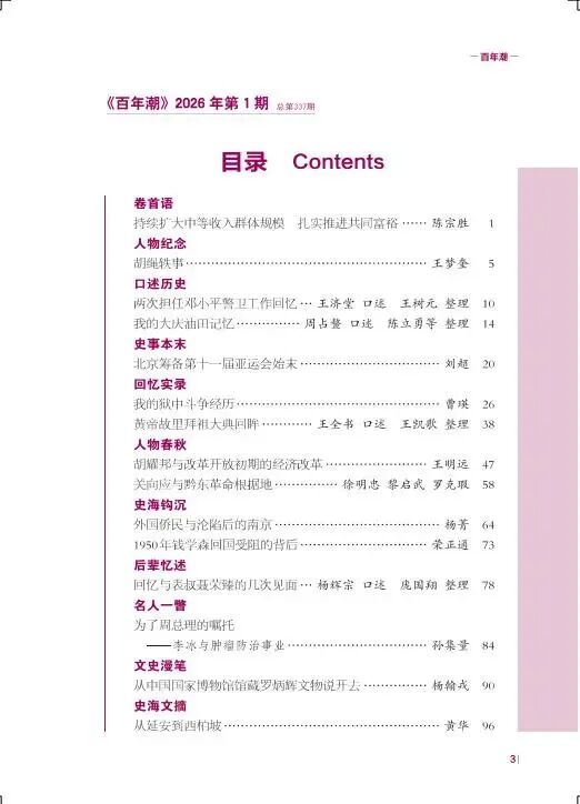 《百年潮》2026年第1期目錄