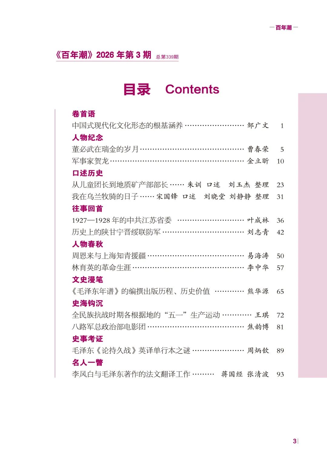 《百年潮》2026年第3期目錄