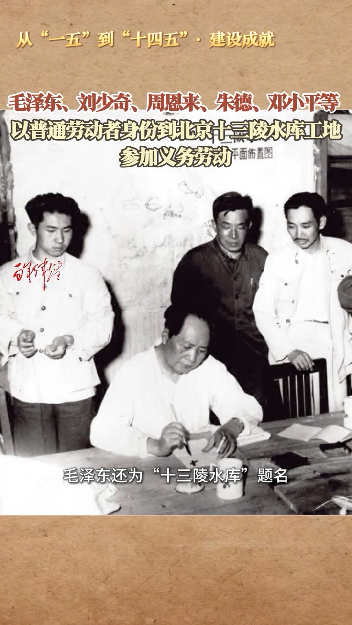 毛泽东刘少奇周恩来朱德邓小平等以普通劳动者身份到北京十三陵水库工地参加义务劳动