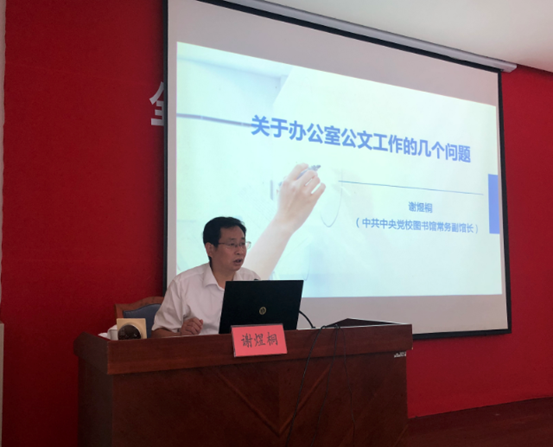 中央党校(国家行政学院)图书和文化馆常务副馆长谢煜桐作《办公室业务工作中的几个问题》专题讲座。