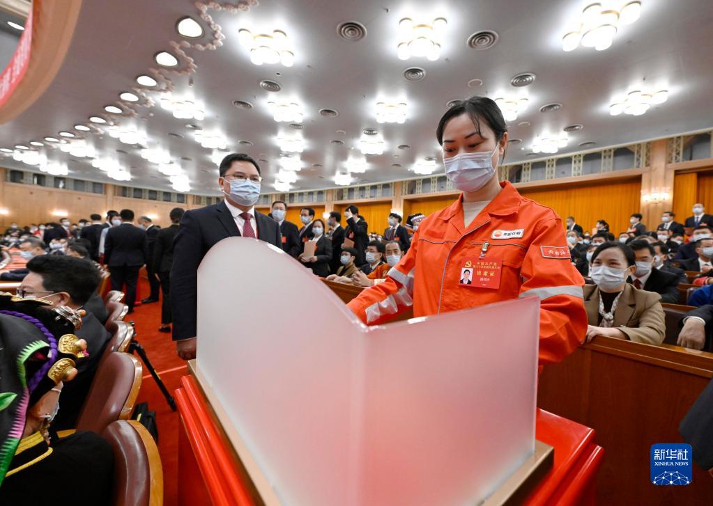 10月22日,中国共产党第二十次全国代表大会闭幕会在北京人民大会堂举行。这是代表投票选举。