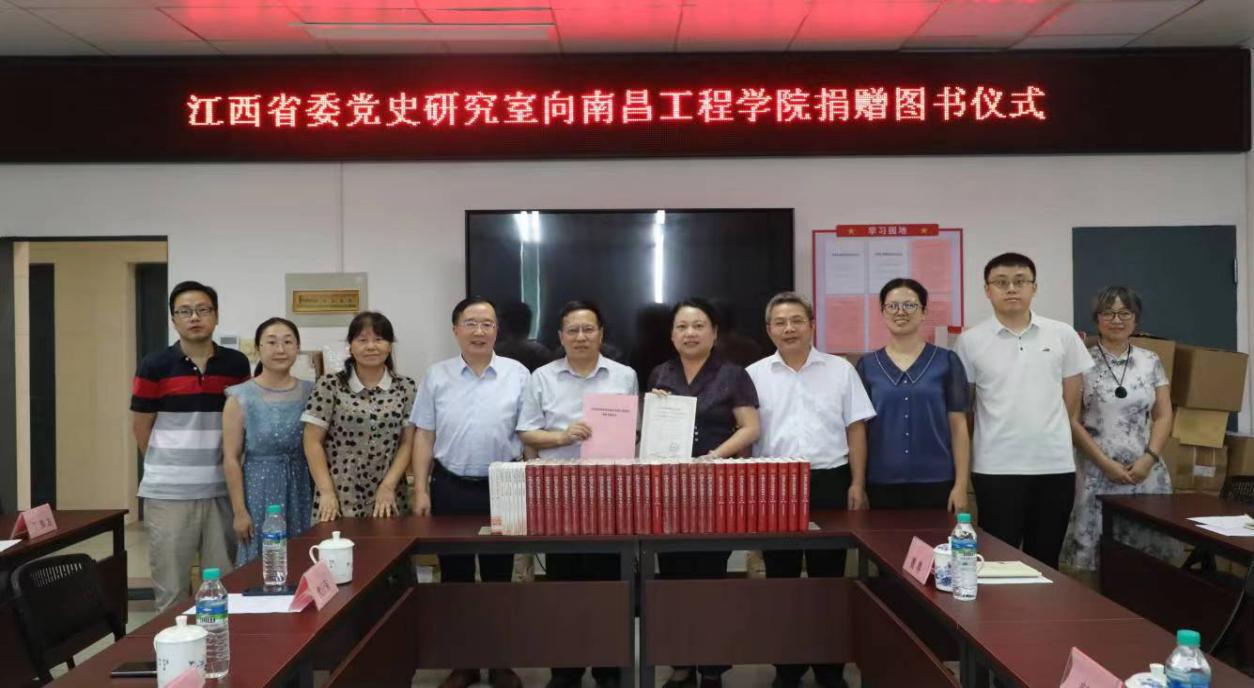 8月11日上午,江西省委党史研究室向南昌工程学院捐赠图书仪式在南昌工程学院图书馆举行。江西省委党史研究室副主任彭勃,南昌工程学院党委书记汪胜前、副校长樊后保、纪委书记殷安全,江西省委党史研究室相关处室负责人及南昌工程学院图书馆相关负责人一同出席捐赠仪式,樊后保主持。