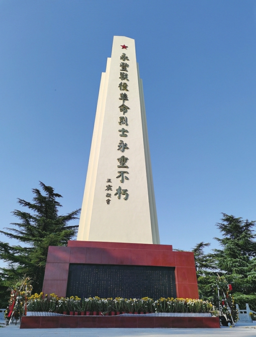 为了颂扬革命烈士丰功伟绩,教育后代继承光荣传统,中共蒲城县委、蒲城县人民政府兴建陵园,安葬忠骨,并于一九五九年勒石铭志。今经济开放,物阜民康,重树新碑,再申纪念,以慰忠魂。