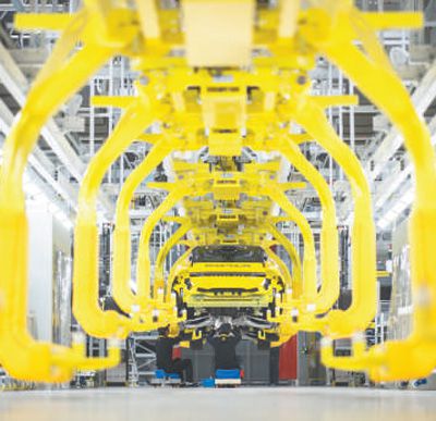湖北省武汉市经开区智能网联和电动汽车产业园内一家工厂的生产流水线。