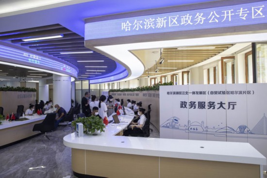 2022年7月12日,市民在黑龙江省哈尔滨新区江北一体发展区(自贸试验区哈尔滨片区)政务服务大厅办理业务。新华社记者 张涛 摄