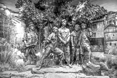 闽中革命史纪念馆内的革命英烈雕塑,展示闽中五名特委为革命坚贞不屈、英勇就义的事迹。