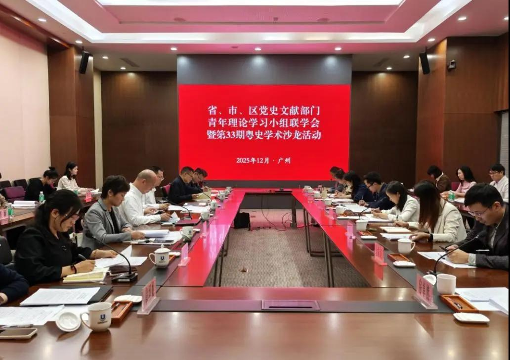12月12日,广东省委党史研究室与广州市委党史文献研究室,联动海珠区、天河区、白云区三地党史文献部门,在广州市地方志馆联合举办党史文献部门青年理论学习小组联学会暨第33期粤史学术沙龙活动。本次活动的主题为“以党史和文献事业高质量发展为中国式现代化建设添彩——深入学习贯彻党的二十届四中全会精神、习近平总书记视察广东和出席第十五届全国运动会开幕式重要讲话重要指示精神”。广州市委党史文献研究室主任黄凯旋出席并作总结讲话。省、市、区三级党史文献部门青年理论学习小组成员和青年代表共40多人参加活动,广州市委党史文献研究室副主任、机关党委书记刘新峰主持活动。