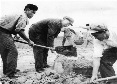 图为1957年,朱启祥在中国人民解放军第二十七军任职时下连队劳动。 江苏省无锡市梁溪区黄巷街道纪工委供图