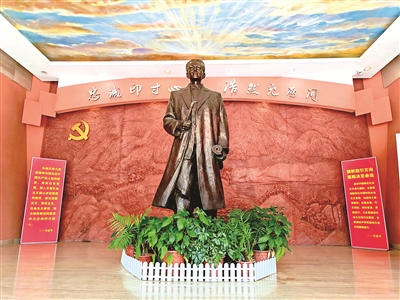 位于湖南省双峰县的蔡和森纪念馆,浓缩了蔡和森救国救民、英勇奋斗的生平事迹。他23岁写下的“忠诚印寸心,浩然充两间”,成为纪念馆的主题。图为蔡和森纪念馆展厅蔡和森“利刃”雕像。 胡锡德 摄